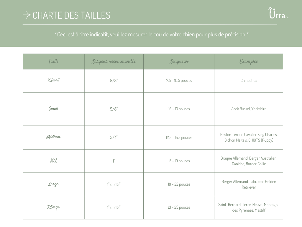 Les colliers 1″ (Médium/Large, Large, XLarge) sont recommandés pour les chiens de taille moyenne à ceux de grande taille.